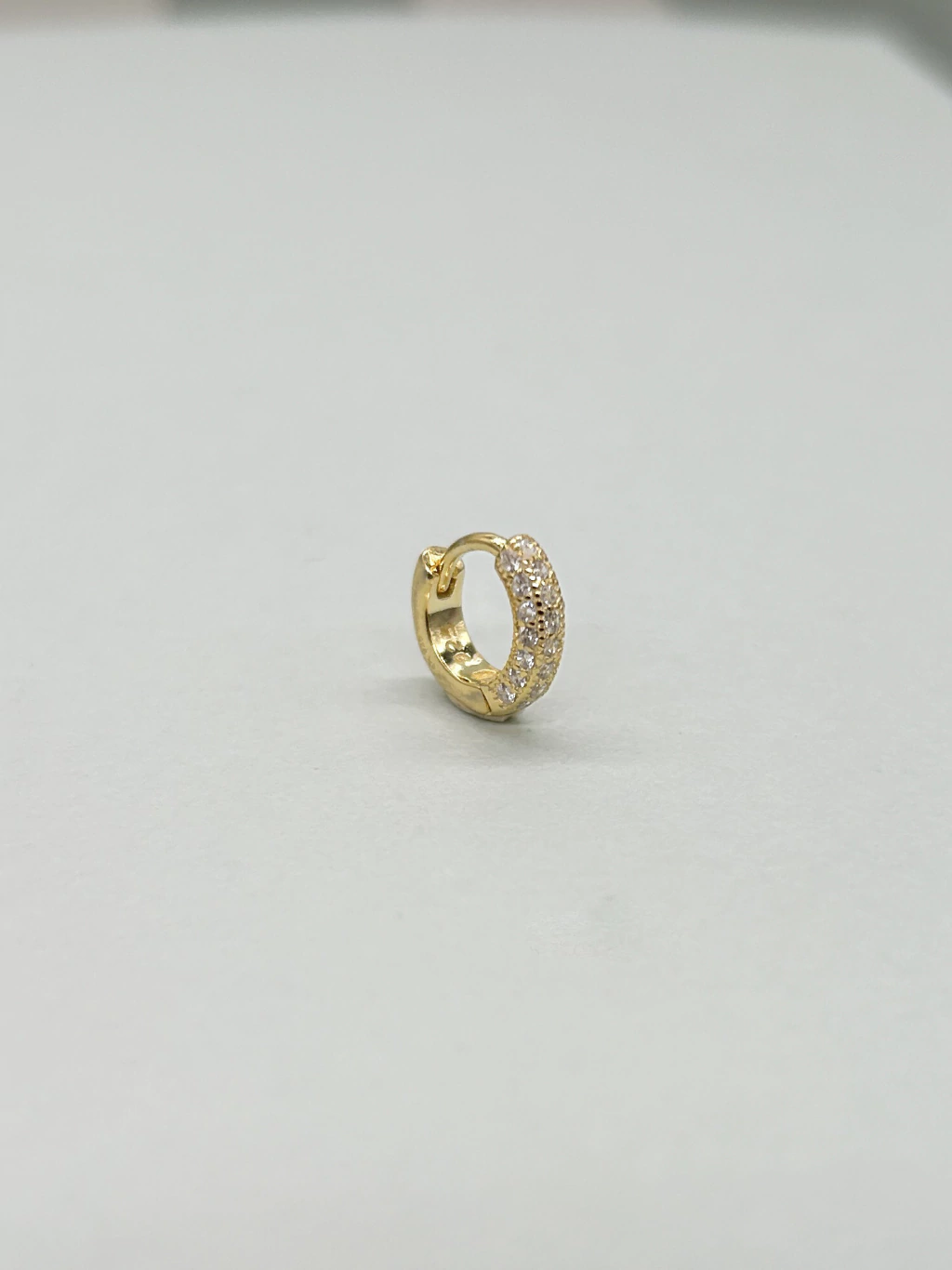 Aro de plata 925 con baño de oro 18k con cristales zircon, tiene 1Cm de diametro ✨