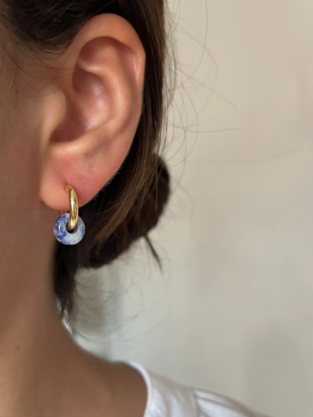 Descripción: Aros de 1,3cm de diámetro con piedra natural. Las piedras son naturales, no hay dos iguales por lo que el color puede variar. El dije mide 1cm de diámetro total.