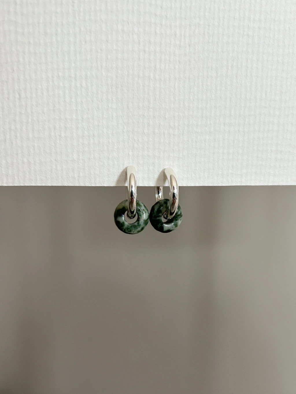 Descripción: Aros de 1,3cm de diámetro con piedra narura. Las piedras son naturales, no hay dos iguales por lo que el color puede variar. El dije mide 1cm de diámetro total.