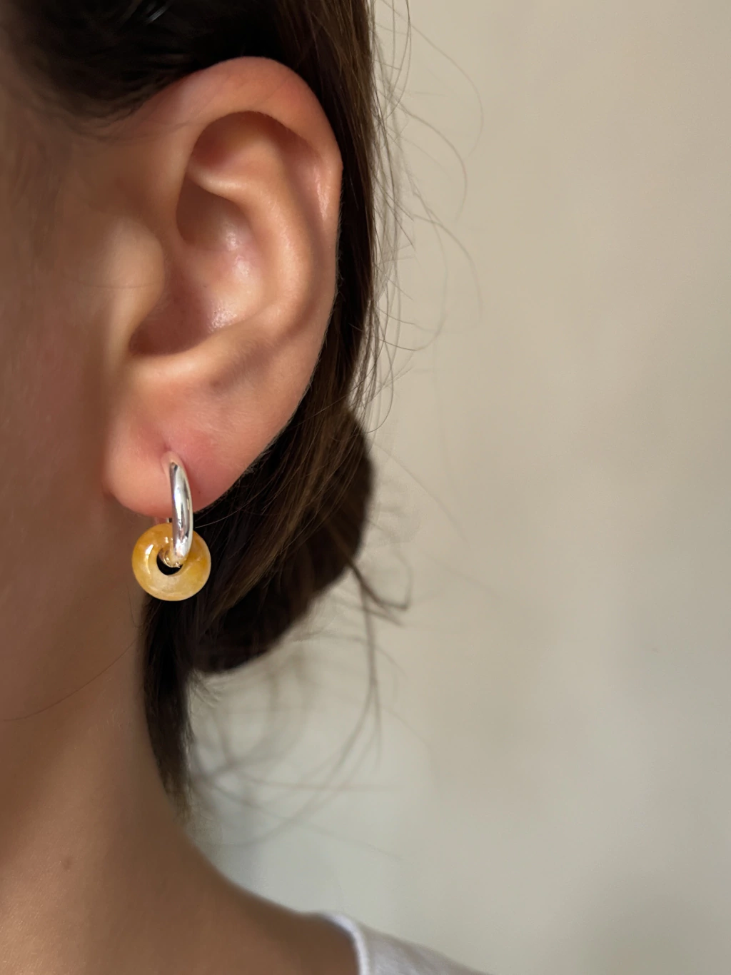 Descripción: Aros de 1,3cm de diámetro con piedra natural. Las piedras son naturales, no hay dos iguales por lo que el color puede variar. El dije mide 1cm de diámetro total.