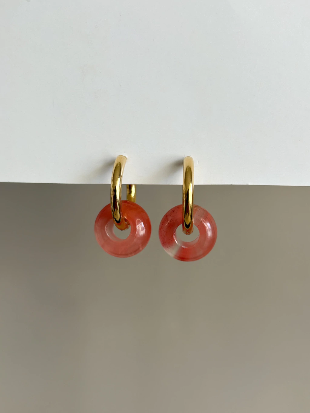 Descripción: Aros de 1,8cm de diámetro con piedra narural ágata cherry. Las piedras son naturales, no hay dos iguales por lo que el color puede variar.