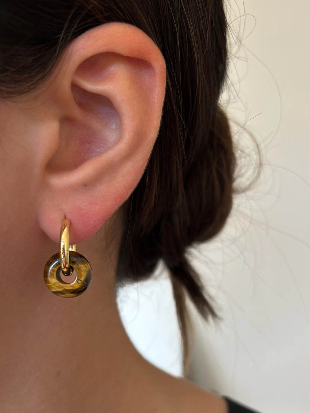 Descripción: Aros de 1,5cm de diámetro con piedra narural ojo de tigre. Las piedras son naturales, no hay dos iguales por lo que el color puede variar.